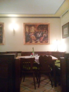 Das Ambiente ist schlicht und einfach gehalten. Einige Ölgemälde an den Wänden und massive Holztische prägen das Bild. Das Restaurant wirkt so wie zu Omas Zeiten. Diese Art wird sicher den einen oder anderen begeistern. Andere werden davon eventuell abgeschreckt.
